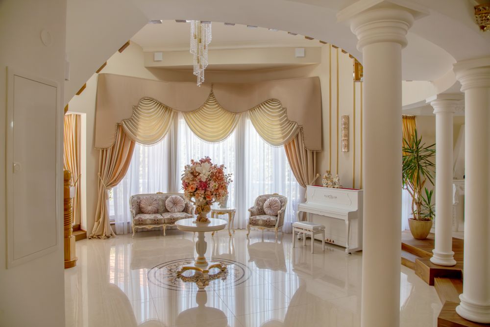 Francouzský styl bydlení se v oblasti interiérů vyznačuje elegancí a použitím luxusních materiálů. Často kombinuje starožitný a moderní nábytek. Styl pak dotváří dekorativní prvky, jako jsou zrcadla a obrazy zpravidla v ozdobných rámech s květinovými motivy, květinová aranžmá, svícny a další umělecká díla. Barvy převládají pastelové a tak dotvářejí romantickou atmosféru.